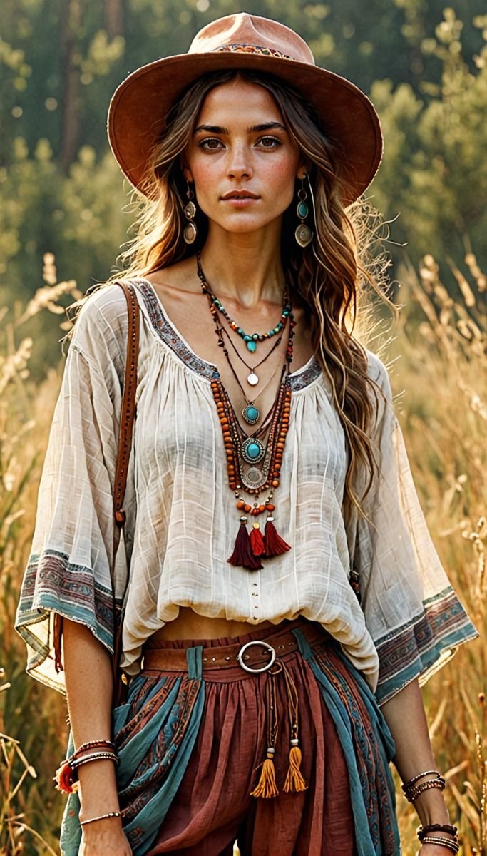 Bohemian fashion, often referred to as boho, draws heavily from gypsy-inspired elements that infuse each outfit with an exotic and free-spirited flair. Central to this aesthetic are vibrant colors, layered textures, and eclectic accessories, all working in harmony to create a visually captivating ensemble. The use of bold hues such as deep reds, royal purples, and lush greens evokes a sense of wanderlust and cultural richness, reminiscent of the nomadic lifestyles that inspire boho fashion.